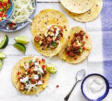 | Tofu Tacos Recipe | olivemagazine red pepper, peanut oil, paprika, oregano, coriander, green chili, cayenne pepper, cumin, dried garlic, mango, coconut, lime, shallot, cabbage, firm tofu, tortilla, yogurt (plain) Tofu doesn't have to be boring with this recipe for cajun-spiced tofu tacos. They're vegan, low calorie, and only need 30 minutes cooking time. STEP 1 Drain the tofu and cut into 2cm cubes. S...