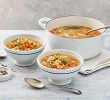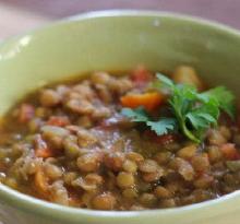 | Lentil soup recipe | BBC Good Food ham stock, vegetable stock, parsley, lentil, carrot, leek Enjoy this filling veggie soup with red lentils, carrots and leeks. It's low in calories and fat and delivers three of your 5-a-day STEP 1 Heat the stock in a large pan and add the lentils. Bring...