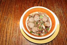 | Ham Soup With Dumplings Recipe by American.Flavor.Carnival | ifood.tv ham stock, pepper, potato, eggs, ham, salt, milk, flour Cook potatoes in ham broth until tender; add ham. Combine egg and milk; add flour to make stiff dough. Roll on floured surface; cut in 1-inch squares. Drop into boiling ham broth; cook, covered, fo...