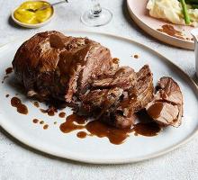 | Roast leg of lamb with rosemary and red wine gravy recipe | Olive Magazine lamb leg, redcurrant jelly, lamb stock, olive oil, rosemary, carrot, onion, garlic, celery, salt, red wine Perfect for a Sunday roast: leg of lamb adorned with rosemary, slow cooked for an hour and a half. Serve with generous amounts of red wine and redcurrant gravy. Ideal served with roast potatoes and ka...