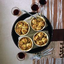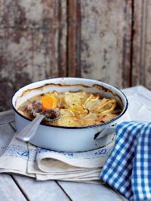 | Individual potato and lamb pies recipe | delicious. magazine butter, lamb stock, olive oil, rosemary, potato, carrot, onion, garlic, lamb, worcestershire sauce, flour Preheat the oven to 190 C/fan170 C/gas 5. Heat the oil in a large, heavy-based casserole, season the lamb and fry, in batches, over a high heat until golden brown. Remove with a slotted spoon. Turn t...