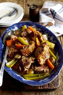 | Slow-cooked lamb stew recipe | delicious. magazine lamb shoulder, lamb stock, olive oil, thyme, pepper, carrot, shallot, garlic, celery, salt Raymond Blanc's divine slow-cooked lamb recipe is a quintessential taste of France. Enjoy with potatoes or rice. Preheat the oven to 140 C/fan120 C/gas. Heat 1 tbsp of the olive oil in a large, he...