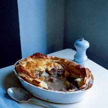 | Cornish pie recipe | delicious. magazine puff pastry, lamb stock, thyme, potato, onion, eggs, lamb, worcestershire sauce, flour Put the lamb, vegetables, stock, thyme and Worcestershire sauce in a large pan. Bring to the boil on the hob, skimming off any foam that rises to the surface. Reduce the heat, cover and simmer for 1 h...