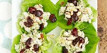 | Cherry Chicken Lettuce Wraps Recipe | EatingWell chicken breast, almond, lemon thyme, pepper, lemon balm, sweet cherry, spring onion, celery, lettuce, salt, mayonnaise, yogurt (plain) This chicken salad is made with a blend of light mayonnaise and fat-free Greek yogurt. Served on butterhead lettuce leaves instead of bread, and topped with sweet cherries and crunchy almonds, this re...