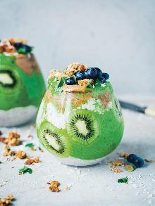 | Kale Smoothie Recipe With Kiwi and Chia | olivemagazine chia seed, muesli, lime peel, coconut water, vanilla extract, lemon balm, banana, coconut milk, avocado, kiwifruit, blueberry, spinach, kale, nut butter Try this kale smoothie recipe with kiwi and chia from Green Kitchen Stories. Green Kitchen Smoothies book shows you how to pack fruit and veg into healthy smoothies STEP 1 To make the coconut chia pu...