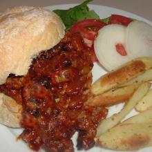 | Skillet Burgers Recipe - Food.com tomato sauce, msg, chili dried/powder, hot sauce, ground beef, tomato soup, onion, celery, salt Serving Size: 1 (156) g Servings Per Recipe: 8 AMT. PER SERVING % DAILY VALUE Calories: 164.3 Calories from Fat 79 g 48 % Total Fat 8.8 g 13 % Saturated Fat 3.5 g 17 % Cholesterol 38.6 mg 12 % ...