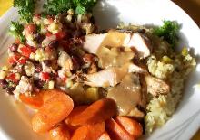 | Lemon Chicken Recipe chicken breast, msg, snap/snow peas, lemon peel, chicken stock, dry sherry, cornstarch, olive oil, oil, ginger root, cumin, lemon, spring onion, garlic, eggs, soy sauce, salt, rice vinegar, rice, sugar, sherry This dish is quick (except for the marinade time which I have added to the prep time.) Once that is done it is comparatively easy..a very tasty dish that I like to serve with spinach and mushroom sala...