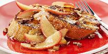 | Maple-Apple Drenched French Toast Recipe | EatingWell pancake, cooking spray, pecan, vanilla, nutmeg, cinnamon, chokeberry/cooking apple, eggs, bread, milk, water Topped with tasty pecans and a delicious apple and maple syrup blend, this French toast is sure to become a go-to recipe for special breakfasts or brunches. Instructions Checklist Step 1 To prepare ...