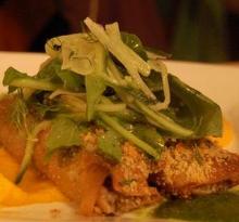 | Crispy Duck Pancakes Recipe with Peach | olivemagazine duck leg, pancake, sesame seed oil, five-spice powder, ginger root, peach, spring onion, bean sprouts, rice vinegar, orange juice Tangy peach sauce makes a great, simple twist to classic crispy duck pancakes. It's so much more satisfying to make these than calling a takeaway STEP 1 The day before, or at least a few hours be...