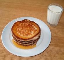 | Vanilla Pancakes Recipe by Diet.Guru | ifood.tv pancake, vanilla extract, eggs, salt, baking powder, vegetable fat spread, sugar, milk, flour In blender container combine all ingredients except syrup; process at low speed until smooth, scraping down sides of container as necessary. Spray 12-inch nonstick skillet with nonstick cooking spray...