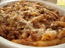 | Pasta Skillet Dinner Recipe - Food.com pasta sauce, ground beef, cheddar cheese, pasta, sour cream, water I found this recipe in the Food Network Magazine. Quick, Easy and Tasty. Just as good reheated, so, great for lunches. Serving Size: 1 (365) g Servings Per Recipe: 4 AMT. PER SERVING % DAILY VALUE ...