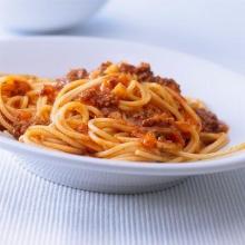 | Spaghetti Bolognese Recipe | SparkRecipes pasta sauce, red onion, bell pepper, ground beef, celery, zucchini/courgette, tomato, pasta Easy, delicious and healthy Spaghetti Bolognese recipe from SparkRecipes. See our top-rated recipes for Spaghetti Bolognese. Cook beef and onion in non-stick pan until beef is browned. Add all veg and...