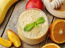 | Peach-Mango Smoothie Recipe | MyRecipes mango, peach, honey, peach juice, peach yogurt This quick and easy peach-mango smoothie is the perfect healthy snack for breakfast on the go. Instructions Checklist Step 1 Place 2/3 cup frozen sliced peaches, 2/3 cup frozen mango pieces, 2/3 cup...