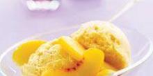 | Peachy Frozen Yogurt - Healthy Recipes peach, sugar, peach yogurt Served as a fruity dessert or snack, our creamy Peachy Frozen Yogurt delivers a double dose of peach flavor and only 1 gram of fat per serving. Step 1 In food processor with knife blade attached, proc...