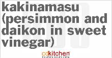 | Kakinamasu (Persimmon And Daikon In Sweet Vinegar) Recipe | CDKitchen.com dashi, lemon peel, seafood stock, mint, persimmon, daikon, soy sauce, salt, rice vinegar, sugar A recipe for Kakinamasu (Persimmon And Daikon In Sweet Vinegar) made with rice vinegar, dashi, sugar, salt, daikon, persimmon, soy sauce, lemon peel, mint DRESSING: In a medium bowl, combine the vineg...