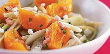 | Persimmon and Fennel Salad Recipe | MyRecipes goat's cheese, olive oil, pepper, chives, persimmon, shallot, fennel, red wine vinegar, salt, sugar The easiest way to peel persimmons is to cut the fruit into wedges and remove the peel from each wedge with a paring knife. We prefer nonastringent Fuyu persimmons in this salad. Serve with roasted po...