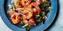 | Shrimp, Pomelo & Green Mango Salad Recipe | EatingWell red pepper, peanut oil, peanut, star anise, mint, ginger root, watercress, coriander leaf, red chili, cinnamon, mango, pomelo, shallot, shrimp, salt, rice vinegar, fish sauce, palm sugar, brown sugar, lime juice You may have spied giant pomelos at your grocery store; this healthy salad recipe is your chance to try the grapefruit-flavored beauty. This salad is packed with plenty of fresh herbs, peppery watercr...