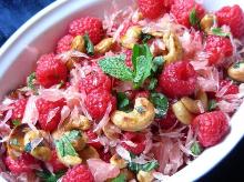 Pomelo Fruit Platter Recipe - Food.com lime peel, cashew, mint, pomelo, raspberry, honey, lime juice I was inspired by a short article in Sunset magazine February 2006 about pomelo fruit. If you wish, strawberries can be substituted for the raspberries. Serving Size: 1 (40) g Servings Per Recipe: 6 ...