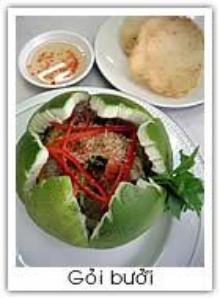 Goi Buoi | Recipes Wiki | Fandom peanut, mint, coriander, pomelo, carrot, cucumber, crab, fish sauce Mix the ingredients, toss them in a bowl and add condiments if needed. Categories Categories : Vietnamese Meat Dishes Vietnamese Salads Crab Recipes Chicken breast Recipes Cucumber Recipes Min...