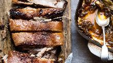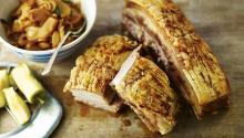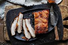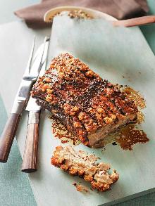 | Three-hour pork belly recipe | BBC Good Food pork belly, olive oil, thyme, pepper, fennel seeds, lemon, garlic Still a relatively cheap cut, pork belly yields beautiful soft flesh and crisp crackling when slow-roasted, from BBC Good Food magazine. STEP 1 Toast 2 tbsp fennel seeds and 1 tsp black peppercorns i...