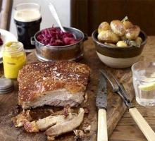 | Roast pork belly recipe - BBC Food pork belly, thyme, sage, pepper, apple, onion, salt, apple cider, flour The Hairy Bikers' recipe for the ultimate roast pork belly is great for a Sunday lunch or dinner party. Preheat the oven to 240C/220C (fan)/Gas 9.. Dry the pork belly skin with kitchen paper. Mix...