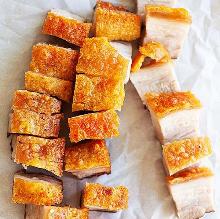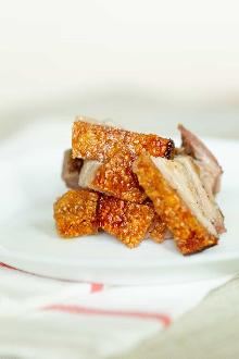 | Cantonese Roast Pork Belly - The Woks of Life pork belly, shaoxing wine, five-spice powder, white peppercorn, salt, rice vinegar, sugar Cantonese Roast Pork Belly, or siu yuk, can be found in many Chinatown restaurant windows, but with our recipe, you can make it at home! Rinse the pork belly and pat dry. Place it skin-side down on a ...