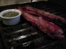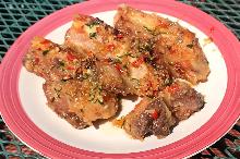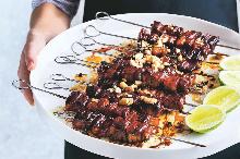 | Chargrilled Chiang Mai pork belly recipe : SBS Food pork belly, oyster sauce, light soy sauce, chili dried/powder, tamarind, pepper, galangal, coriander seed, coriander, garlic, sugar Marinating time: 1 hour To prepare the sauce, combine all the ingredients in a small bowl. Set aside. In a mortar and pestle, pound the garlic, coriander root and coriander seeds to a fine paste. Pl...