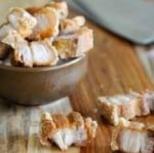 | Vietnamese Thit Heo Quay - No Fail Crispy Crunchy Pork Belly Recipe pork belly, five-spice powder, garlic, salt, sugar, lime juice Learn how to make Vietnamese Crispy Crunchy Pork Belly recipe in an easy way. I'm sharing with you my tried and true, no fail recipe for this juicy and cruncy dish! Preparation Day Before Elimina...