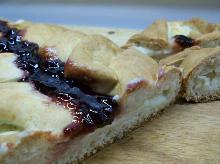 | Jam and Cheesecake Loaf Recipe - Food.com yeast, biscuit mix, eggs, cream cheese, raspberry jelly, sugar, lemon juice, water Here is an easy, delicious, attractive make ahead breakfast bread. You assemble and refrigerate it the day before. Bake it while you do something else like during your morning shower:) The hardest thi...