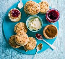 | Peanut Butter Scones Recipe With Jam | olivemagazine butter, peanut, raspberry jam/preserve, peanut butter, salt, raspberry jelly, sugar, self raising flour, clotted cream, milk Try our peanut butter scones recipe. Peanut butter and jelly is a classic American flavour combination, so we've made peanut butter and jelly scones STEP 1 Put the milk and peanut butter in a pan...