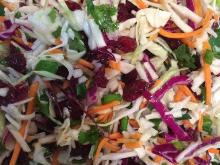 | Christmas Coleslaw Recipe - Food.com red cabbage, canola oil, pepper, coriander, cranberry, spring onion, cabbage, salt, orange juice This is from a Chamber of Commerce cranberry cookbook put out by the local women of the Westport-Grayland area of the Washington coast, where cranberries are grown. Serving Size: 1 (92) g Servings Pe...