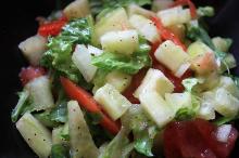 | Fennel Salad Recipe - Food.com red onion, canola oil, pepper, orange, apple, fennel, salt, orange juice, lemon juice Part of this very simple recipe came to me via the Food Network, and I played around with it. It is difficult to be exact about the proportions, but what follows works well for me. Great with fish, ch...