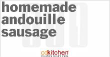 | Homemade Andouille Sausage Recipe | CDKitchen.com red pepper, chili dried/powder, sassafras, pepper, paprika, cumin, dried garlic, garlic, pork, salt A recipe for Homemade Andouille Sausage made with boneless pork butt, chili powder, paprika, gumbo file powder, black pepper, cumin Prepare the smoker. In a mixing bowl, toss the pork with the remaini...