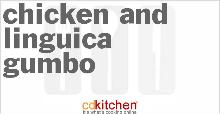| Chicken And Linguica Gumbo Recipe | CDKitchen.com green bell pepper, linguica sausage, hot sauce, chicken stock, oil, sassafras, pepper, parsley, cayenne pepper, spring onion, garlic, celery, whole chicken, salt, rice, flour A recipe for Chicken And Linguica Gumbo made with Linguica sausage, vegetable oil, chicken, salt and freshly ground black pepper, flour Cook the sausage in a large, heavy ungreased skillet over low he...