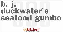 | B. J. Duckwater's Seafood Gumbo Recipe | CDKitchen.com hot sauce, seafood stock, oil, thyme, sassafras, pepper, parsley, oregano, bay leaf, basil, allspice, spring onion, onion, garlic, celery, okra, shrimp, crab, worcestershire sauce, salt, cajun seasoning, sugar, water, flour A recipe for B. J. Duckwater's Seafood Gumbo made with bay leaves, thyme, black pepper, salt, allspice, oregano, basil, vegetable oil, flour Combine bay leaves, thyme, black pepper, salt, allspice...