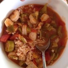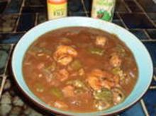 | Shreveport Chicken and Shrimp Gumbo Recipe - Food.com chicken, green pepper, hot sauce, chicken stock, vegetable juice, oil, thyme, sassafras, cayenne pepper, bay leaf, spring onion, onion, garlic, celery, okra, tomato, shrimp, salt, rice, flour We found a great Gumbo recipe from one of those magazine type cookbooks you find at the grocery store check-out, and we've tweaked it a little to create this delicious dish. Serving Size: 1 (538) ...