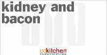 | Kidney And Bacon Recipe | CDKitchen.com sheep kidney, onion, bacon, salt, water, flour A recipe for Kidney And Bacon made with onion, water, bacon, sheep's kidney, flour Dice or grate onion. Boil water. Place onion in boiling water; simmer gently until tender. Remove rind from bacon...
