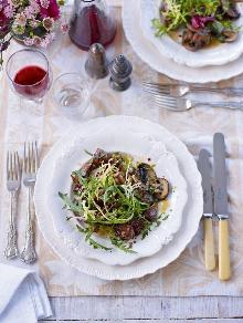 | Lamb's kidney and mushroom salad recipe | delicious. magazine sheep kidney, olive oil, tarragon, peppercorn, mushrooms, garden rocket, lettuce, mustard, white wine vinegar Whisk the dressing ingredients together in a small bowl or jar, season and set aside. Using a sharp knife or kitchen scissors, remove the skin and fatty membrane from the centre of the kidneys, then ...