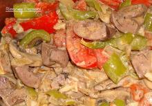 | Kidney and Sausage Casserole Recipe - Cookitsimply.com sheep kidney, green pepper, beef stock, oil, pepper, parsley, mustard powder, onion, tomato, sausage, salt, flour This recipe for kidney and sausage casserole is very quick and easy to make. It's hearty, tasty, and budget-friendly. Heat the oil in a frying pan and cook the onion and pepper in the oil for a fe...