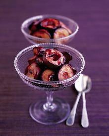 | Plums roasted with sloe gin recipe | delicious. magazine orange, plum, sugar, sloe gin This dessert recipe for plums, roasted in sloe gin, is perfect for entertaining. Find out how to make your own sloe gin or use a shop-bought bottle. Preheat the oven to 200 C/fan180 C/gas 6. Put the p...