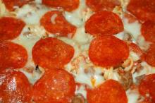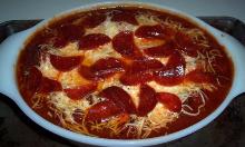 | Pizza Pasta Casserole Recipe - Food.com spaghetti sauce, pepperoni sausage, ground beef, onion, mozzarella cheese, pasta A quick, easy, great tasting casserole that everyone likes (even your picky teenager). Serving Size: 1 (202) g Servings Per Recipe: 8 AMT. PER SERVING % DAILY VALUE Calories: 472.5 Calories from F...