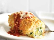 | Chicken-Parmesan Bundles Recipe - Food.com chicken breast, spaghetti sauce, spinach, eggs, parmesan cheese, mozzarella cheese, cream cheese, crackers Try Chicken-Parmesan Bundles from Food.com. - 449793 Serving Size: 1 (225) g Servings Per Recipe: 6 AMT. PER SERVING % DAILY VALUE Calories: 274.7 Calories from Fat 113 g 41 % Total Fat 12.6 g 19...