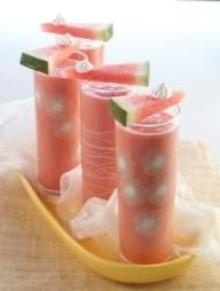 | Watermelon Malibu Surf : Recipe - GourmetSleuth coconut cream, strawberry, watermelon, whipped topping, spiced rum Blend watermelon, strawberries, coconut cream and rum just until smooth. Place in freezer for one hour, stirring occasionally. Pour into chilled glass. Garnish with mini watermelon wedges and whipped ...