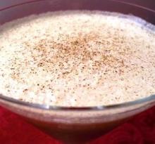 | Eggnog Fizz Martini Recipe by Herbal.Kitchen | ifood.tv egg whites, nutmeg, cinnamon, ginger ale, spiced rum, half and half, ice In a cocktail shaker combine egg white, spiced rum, fat-free half & half and a dash of ground cinnamon. Shake well. Add ice to cocktail shaker, and shake well again (approximately 30 seconds). Pou...