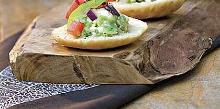 | Guacamole-Goat Cheese Toasts Recipe | MyRecipes red onion, pitta bread, goat's cheese, olive oil, pepper, jalapeno, avocado, garlic, tomatillo, tomato, salt, lime juice Perfect Partner: 2005 Villa Appalaccia, Pinot Grigio, Virginia; 2007 Flora Springs, Pinot Grigio, California Instructions Checklist Step 1 Cut avocados in half. Scoop pulp into a bowl, and mash with...