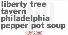 | Liberty Tree Tavern Philadelphia Pepper Pot Soup Recipe | CDKitchen.com tripe, green bell pepper, chicken stock, beef stock, onion, leek, celery, tomato, ham, salt, rice, vegetable fat spread, water A recipe for Liberty Tree Tavern Philadelphia Pepper Pot Soup made with margarine, onions, leeks, celery, ham, water, chicken bouillon cubes, beef bouillon Heat margarine in a large saucepan. Add onio...