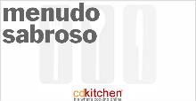 | Menudo Sabroso Recipe | CDKitchen.com tripe, hominy, chili dried/powder, bicarbonate of soda, pepper, parsley, oregano, marjoram, coriander leaf, cumin, lime, spring onion, onion, garlic, beef, water A recipe for Menudo Sabroso made with water, dried parsley, tripe, onions, black pepper, ground red chili powder, hominy, lime Wash beef knuckles thoroughly and put with water in a large pot. Add pars...