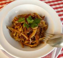 | Tripe Casserole Recipe by Meat.World | ifood.tv tripe, olive oil, cayenne pepper, potato, onion, tomato, cheese Put the tripe into a pan of salted cold water to cover. Bring to a boil, skim and simmer the tripe for one hour. While the tripe is cooking, heat half the olive oil and in it fry the potatoes until ...
