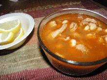 | Menudo Soup, Mexican Tripe Soup Recipe, Whats Cooking America tripe, hominy, chili dried/powder, pepper, oregano, coriander seed, coriander leaf, lemon, spring onion, onion, garlic, salt Almost any weekend morning, you can be assured that a large number of homes in the southwest will have a pot of Menudo Soup cooking, Mexican Tripe Soup. I have been told there is an old wives tale abo...
