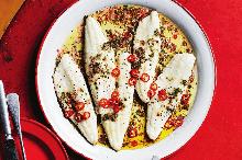 | Grilled whiting with Mediterranean bean salad - Recipes - delicious.com.au whiting fish, cannellini bean, red onion, chili dried/powder, olive oil, parsley, lemon, celery, bean, red wine vinegar Fresh herbs and tangy lemon infuse this fish dish with the flavours of the Mediterranean. 1. Combine the mixed and cannellini beans, celery, parsley, onion, vinegar and 1 tablespoon of oil in a large...